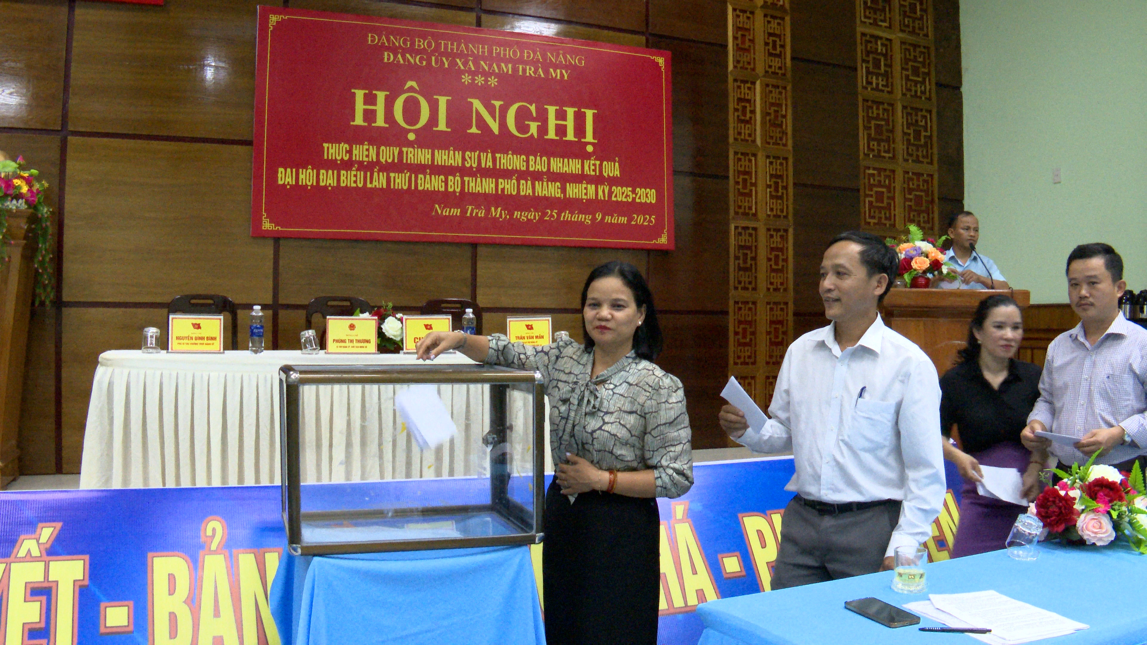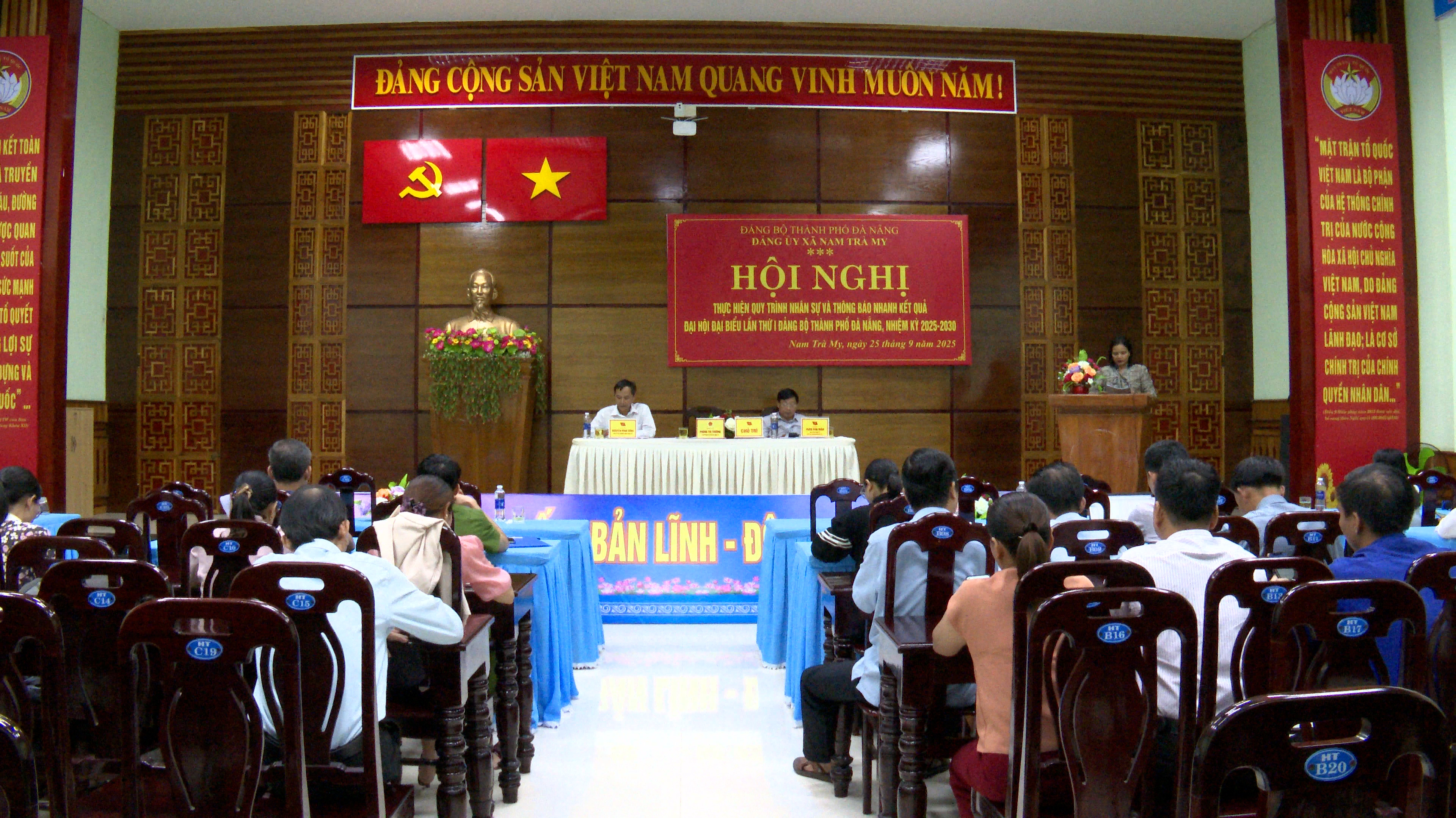 Chiều 25/9, Đảng uỷ xã Nam Trà My tổ chức buổi Hội nghị thực hiện quy trình nhân sự và thông qua báo cáo nhanh kết quả Đại hội đại biểu lần thứ nhất Đảng bộ thành phố Đà Nẵng, nhiệm kỳ 2025 – 2030. Đồng chí Phùng Thị Thương – Bí thư Đảng ủy xã; đồng chí Nguyễn Đình Bính – Phó Bí thư Thường trực Đảng ủy xã; đồng chí Trần Văn Mẫn – Phó Bí thư Đảng ủy, Chủ tịch UBND xã đồng chủ trì. Tham dự hội nghị có đông đủ các đồng chí trong Ban Chấp hành, đại diện các ban, ngành, đoàn thể cùng lãnh đạo các trường học trên địa bàn xã.