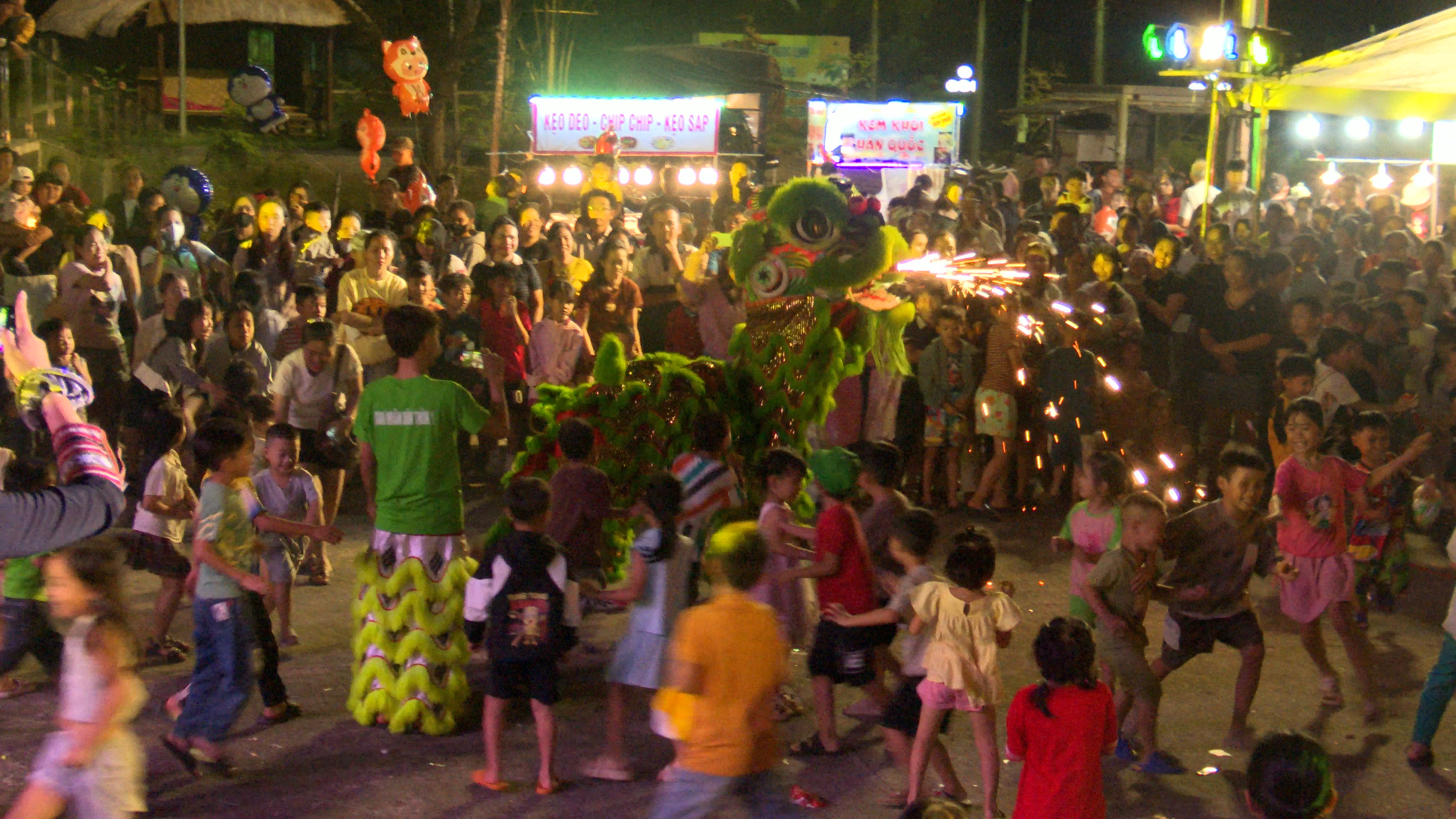 Ngoài phần quà, các em còn được tham gia nhiều hoạt động sôi nổi như hội thi múa lân, xem biểu diễn văn nghệ do thanh thiếu niên địa phương dàn dựng. Tiếng trống lân rộn ràng cùng những điệu múa vui nhộn đã mang đến không khí tưng bừng, náo nhiệt, khiến đêm Trung thu vùng cao thêm phần đặc sắc.