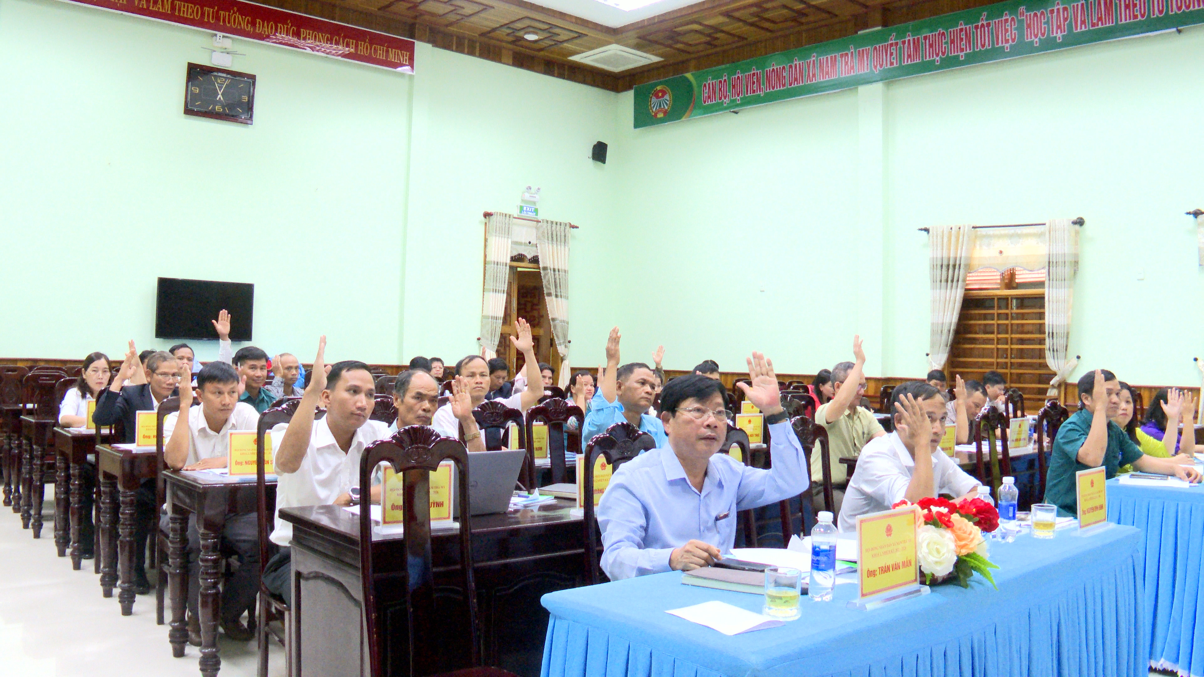 Đại biểu HĐND xã Nam Trà My biểu quyết nhiều nội dung quan trọng tại kỳ họp: Ảnh: TRUNG LÊ