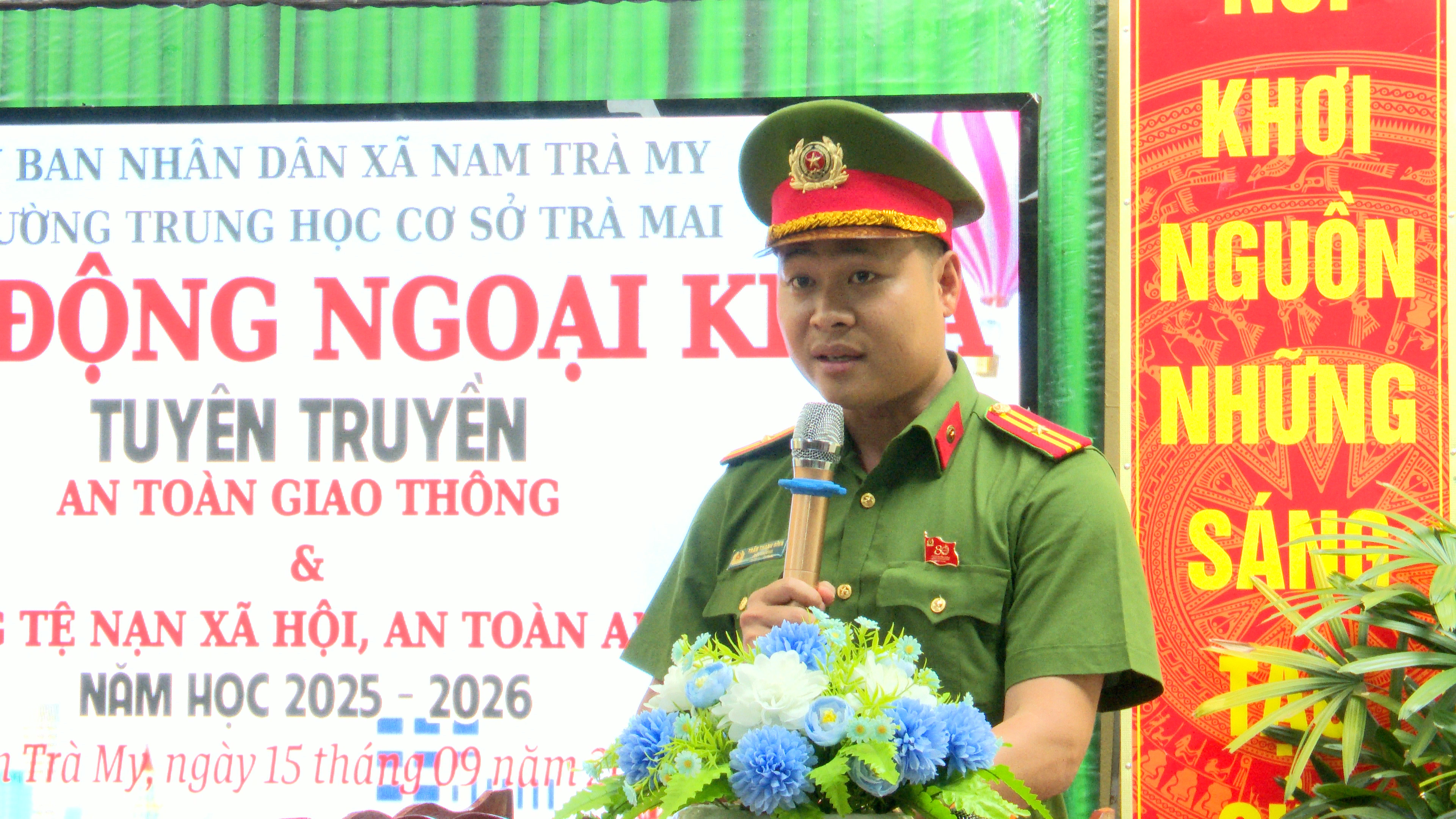 Phát biểu tại chương trình, thầy giáo Ngô Thanh Tài – Hiệu trưởng Trường THCS Trà Mai cho biết: “Đảm bảo an toàn giao thông và giữ gìn an ninh trật tự là trách nhiệm của mỗi cá nhân. Nhà trường mong muốn, thông qua hoạt động ngoại khóa này, các em học sinh sẽ hình thành thói quen chấp hành pháp luật, xây dựng môi trường học đường an toàn, lành mạnh, đồng thời lan tỏa tinh thần tích cực đến gia đình và cộng đồng.”