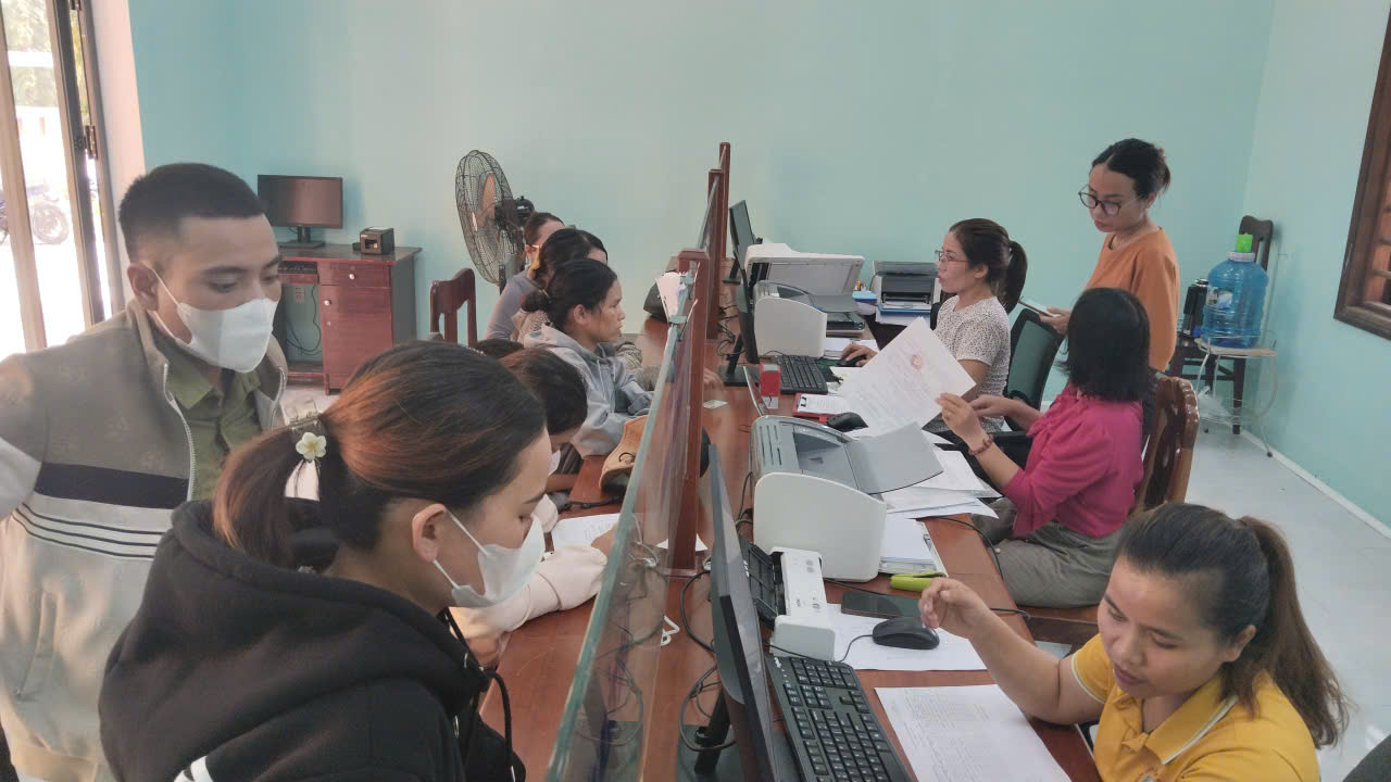 Quang cảnh buổi làm việc tại Trung tâm phục vụ hành chính công xã Nam Trà My