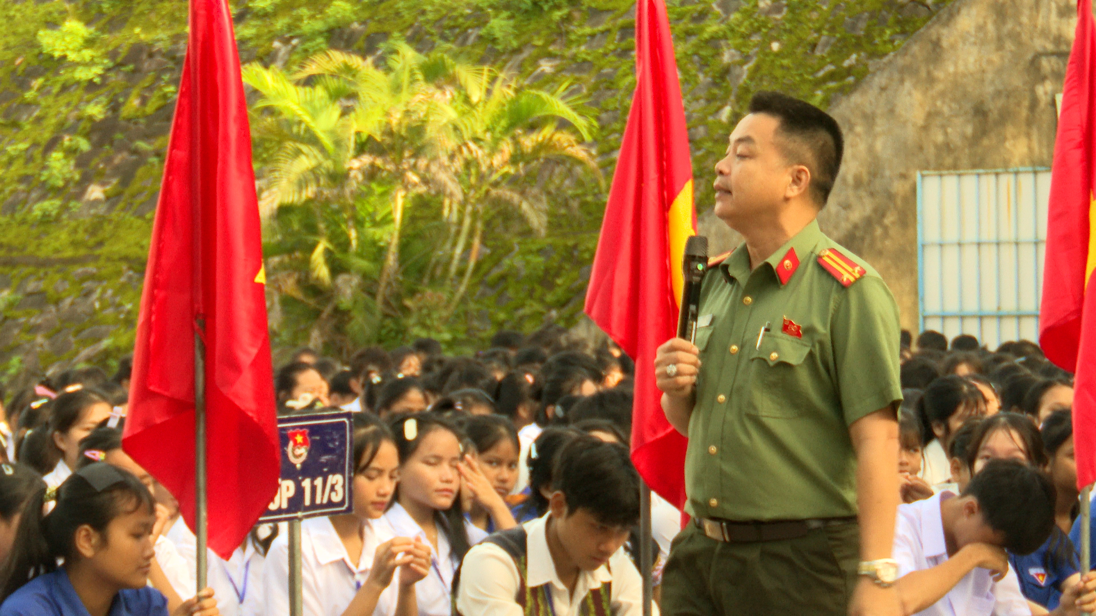 Đại diện lãnh đạo Phòng PC02- Cục Cảnh sát hình sự Bộ Công An tuyên truyền, giáo dục pháp luật tại trường THPT Nam Trà My.