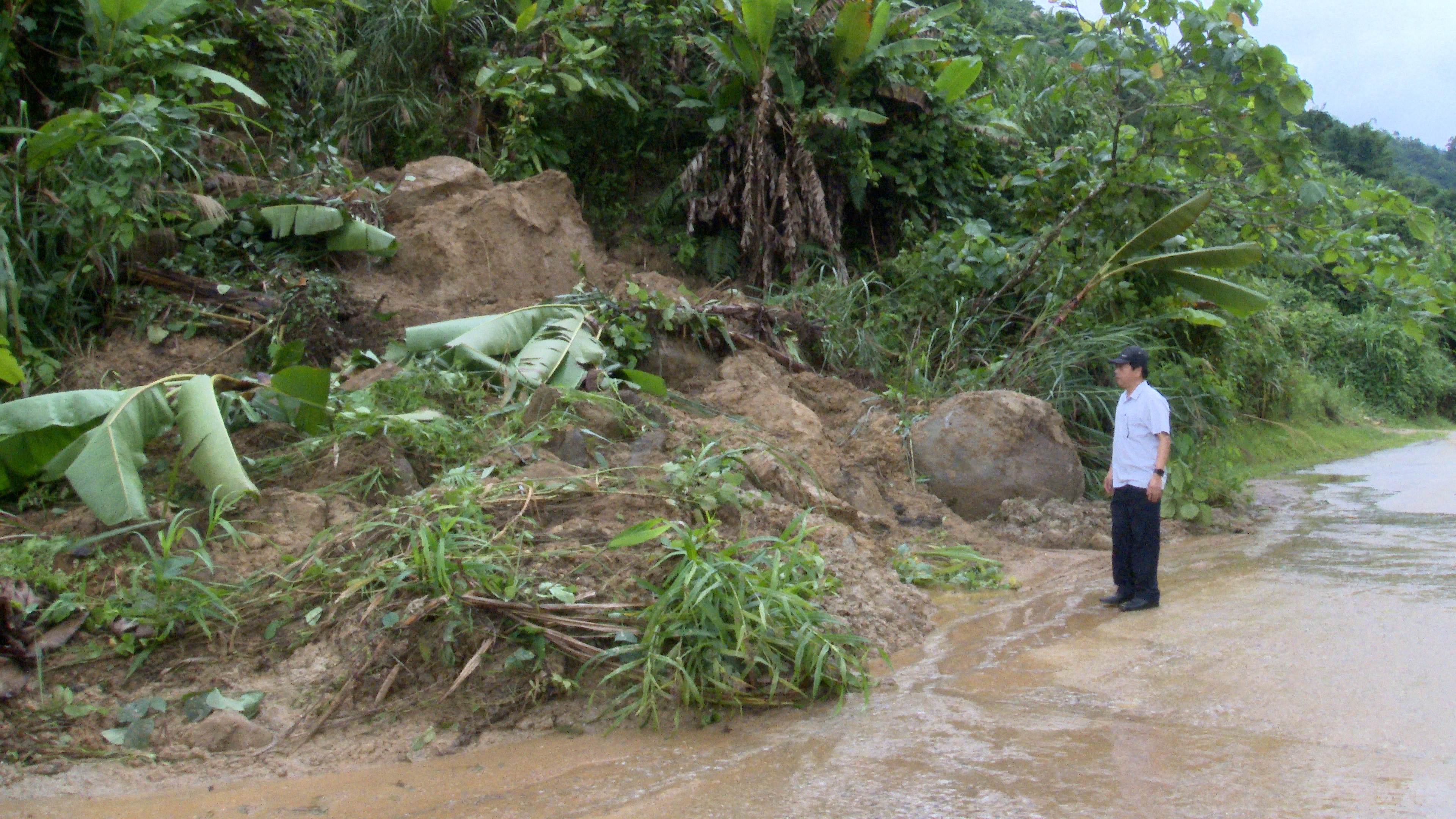 Chủ tịch UBND xã Nam Trà My kiểm tra sạt lở tại tuyến đường quốc lộ B40