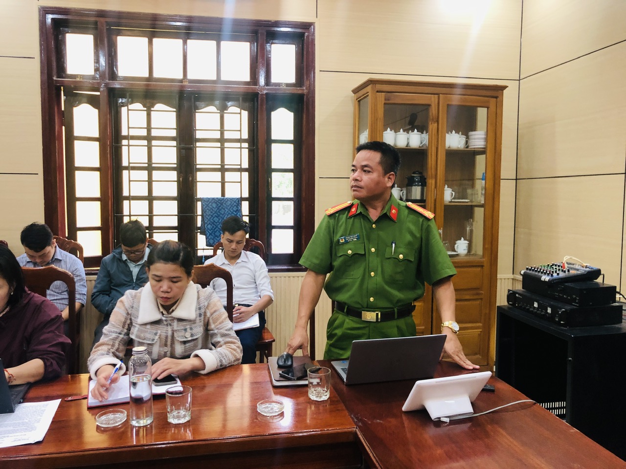 Lãnh đạo Công an xã Nam Trà My phát biểu một số biện pháp phòng chống bão tại cuộc họp