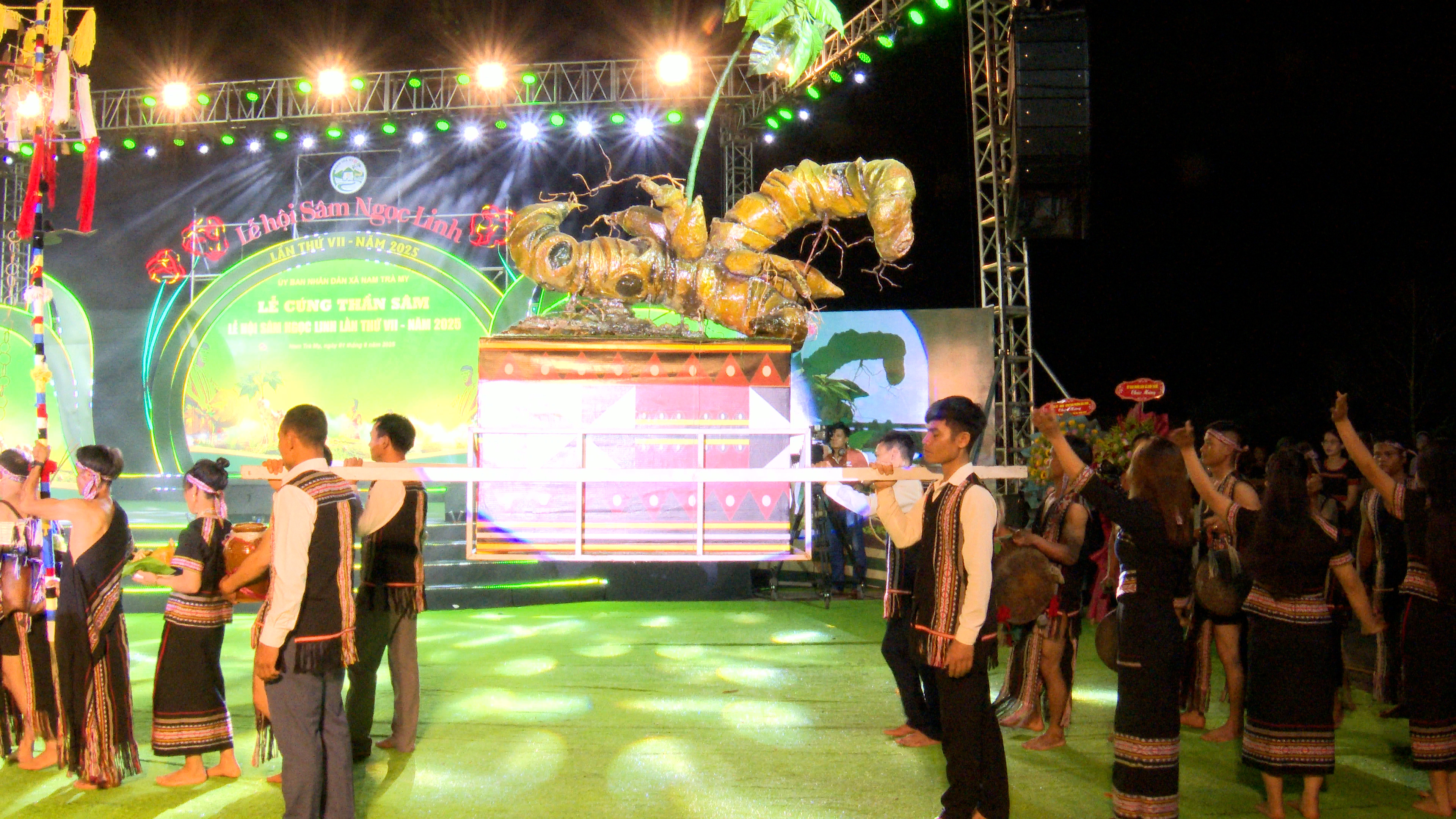 Một trong những hoạt động ấn tượng nhất là lễ cúng thần sâm tại đền thờ Thần sâm Ngọc Linh làng KonPin (thôn 2) xã Trà Linh, một nghi thức thiêng liêng của người vùng cao nhằm bày tỏ lòng biết ơn với thần rừng, thần núi đã ban tặng cây sâm quý cho bản làng. Trong ánh lửa bập bùng, già làng thực hiện nghi thức cúng với rượu cần, gà trống và các bài khấn cầu mong mùa màng bội thu, cây sâm phát triển tốt.