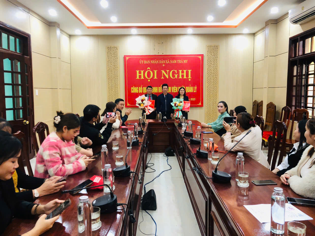 đồng chí Võ Như Sơn Trà phó chủ tịch UBND xã tặng hoa chúc mừng hai đồng chí vừa được bổ nhiệm