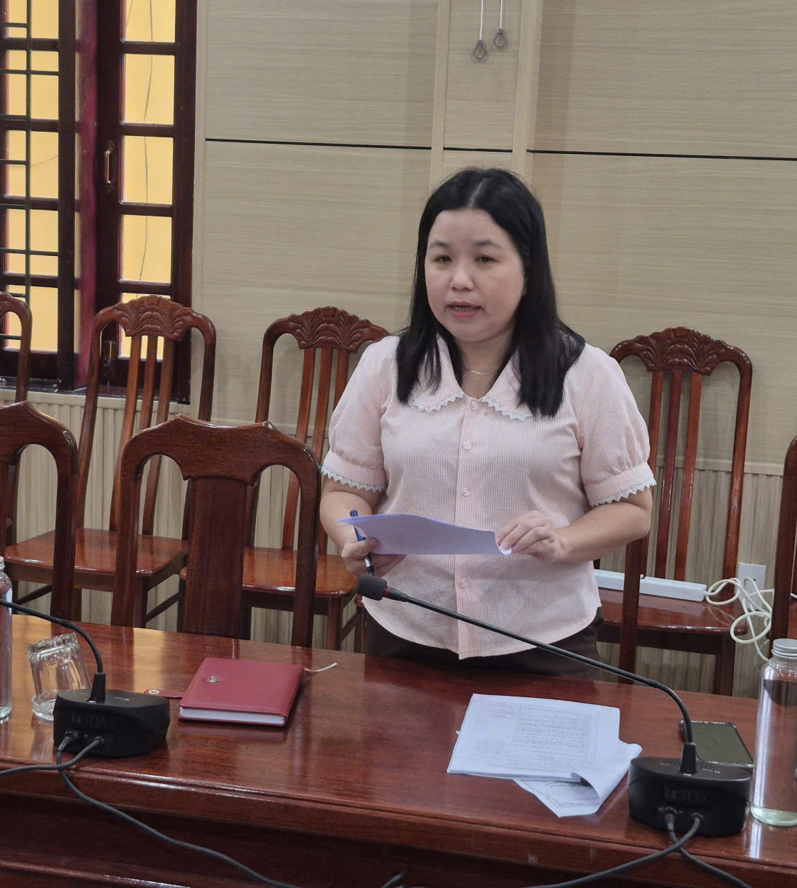 Đồng chí: Vũ Thị Như Thuyên - UVBTV Đảng ủy, Trưởng ban xây dựng Đảng, thành viên ban chỉ đạo bầu cử phát biểu