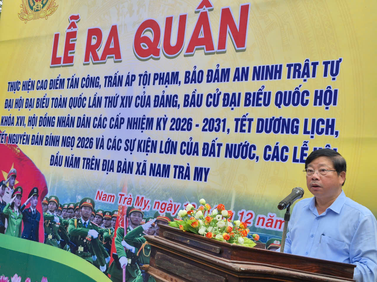 Tại buổi lễ, Thiếu tá Phạm Phú Trúc – Phó Trưởng Công an xã đã thông qua Kế hoạch triển khai Đợt cao điểm, nhấn mạnh mục tiêu huy động sức mạnh tổng hợp các lực lượng, tạo khí thế tấn công mạnh mẽ, đẩy lùi tội phạm và các hành vi vi phạm pháp luật, bảo đảm bình yên địa bàn trong dịp lễ và Tết Nguyên đán Bính Ngọ 2026.