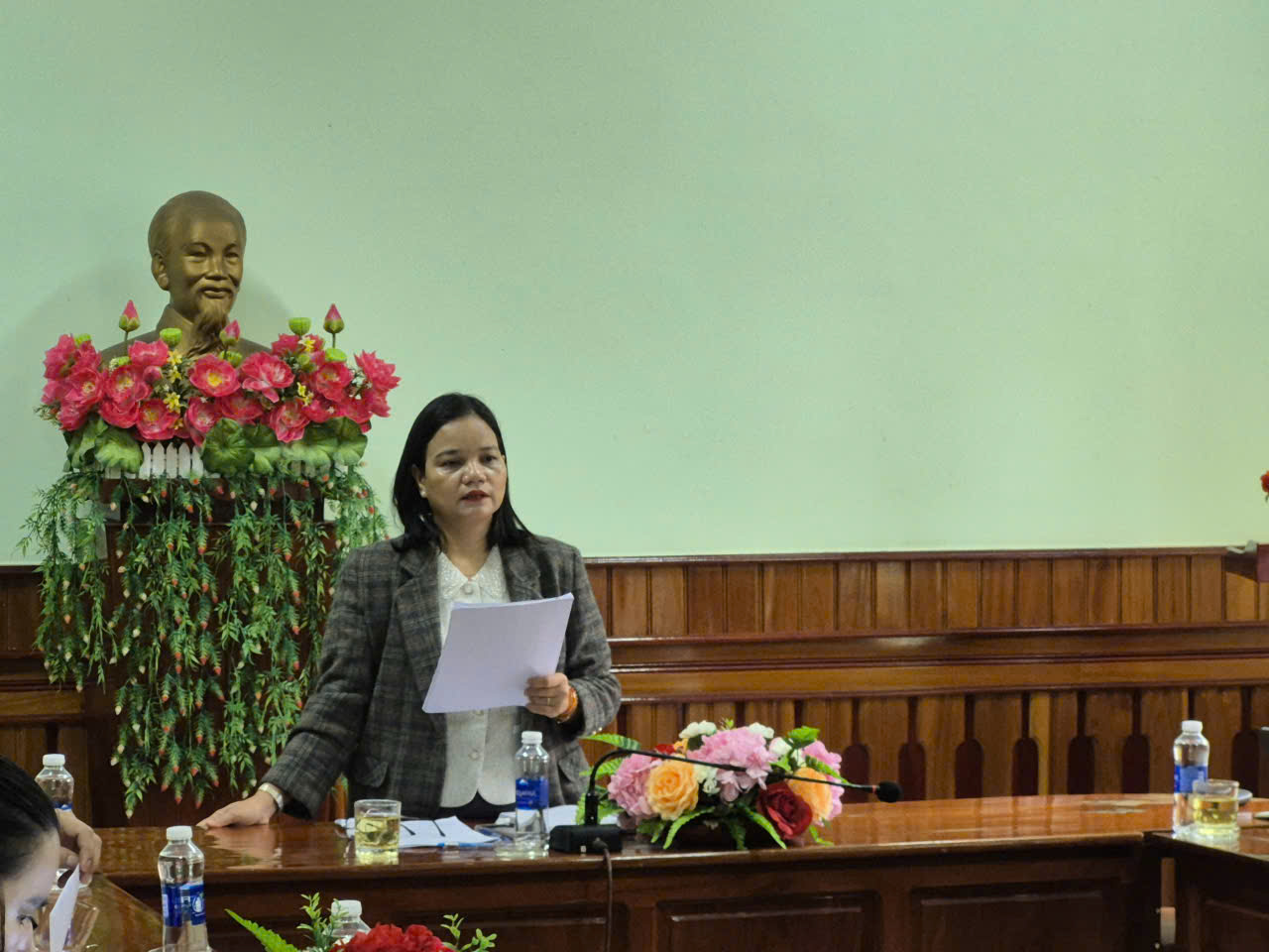 Đồng chí Phùng Thị Thương – Bí thư Đảng ủy, Chủ tịch HĐND xã, Trưởng Ban Chỉ đạo công tác bầu cử xã chủ trì cuộc họp.